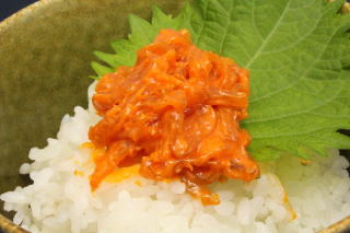 うにとクラゲを混ぜ合わせました。甘口ですが、お酒の好きな方にはたまらない味です。