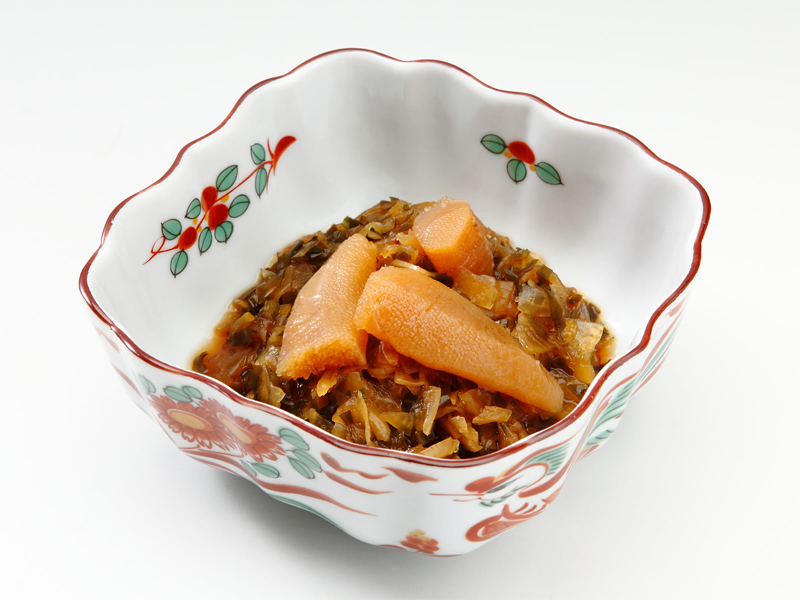海の幸(数の子、スルメ、昆布)と山の幸(大根、キュウリ)の、おなじみの醤油漬です。永年のベストセラー。