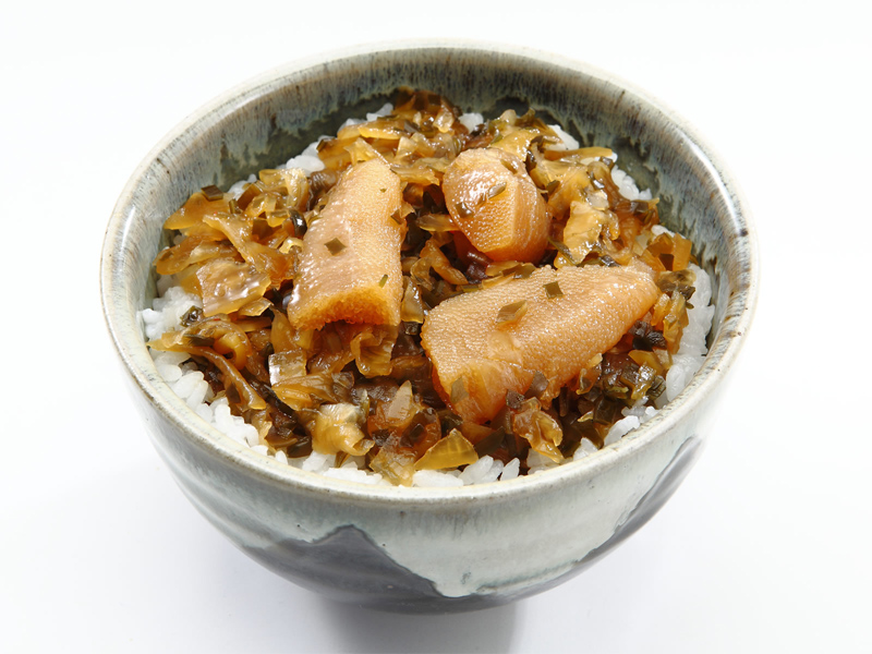 海の幸(数の子、スルメ、昆布)と山の幸(大根、キュウリ)の、おなじみの醤油漬です。永年のベストセラー。